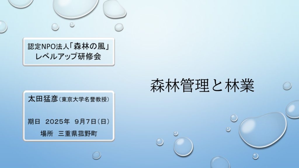 こんにちは森林の風事務局です。令和7年9月7日、森林の風主催のレベルアップ講座において、東京大学名誉教授である太田猛彦先生をお招きし、森林と人との関わりについてご講義いただきました。本投稿では、太田先生の長年にわたる研究とご経験に基づいた貴重なお話を、皆様により深く理解していただけるよう、AIを活用して講義内容を対話形式にてわかりやすくまとめました。