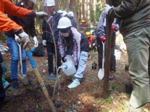 毎年3月下旬には、NTN株式会社様と一緒に植樹イベントを行っています。今年も昨年に続き、モミジとガクアジサイの植樹を実施しました。